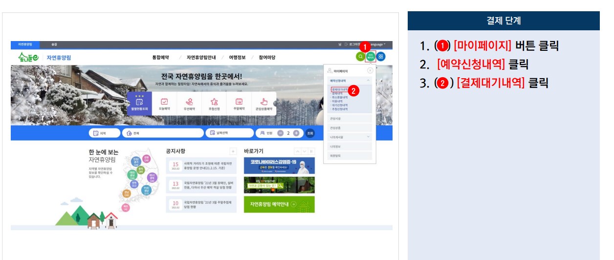 산림휴양 통합플랫폼 '숲나들e'를 통해 6월 11일 예약분부터 적용가능합니다.