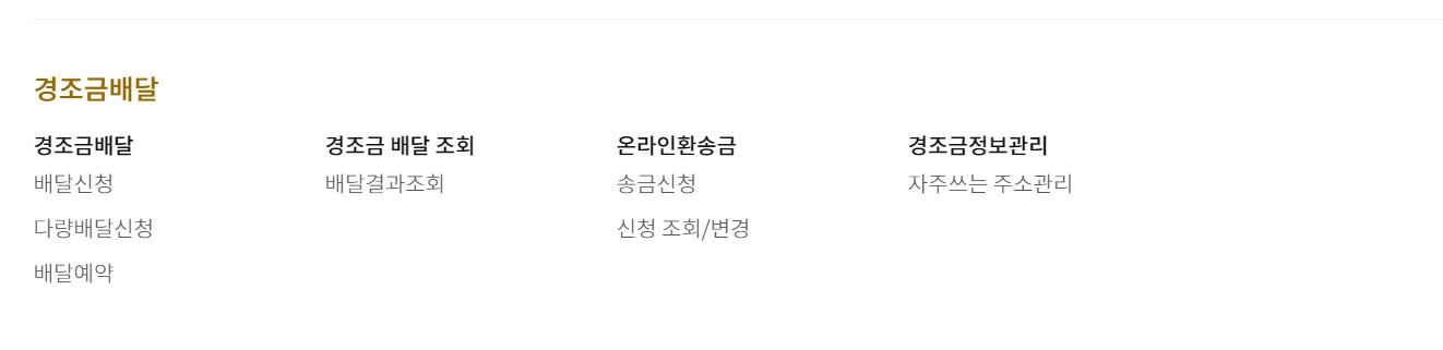 ‘경조금 배달 서비스’는 바쁜 일정으로 경조사에 참석할 수 없는 경우 고객이 요청한 주소지로 경조금과 함께 정성스러운 경조문구가 새겨진 경조 카드를 함께 배달하는 서비스입니다.