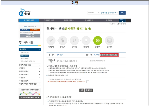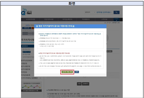 원서 접수 시 응시료 지원받을 시험 선택 후 결제