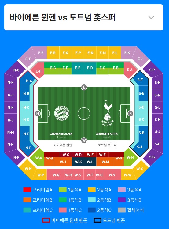 | 좌석 | 팀 K리그 vs 토트 | 뮌헨 vs 토트 |