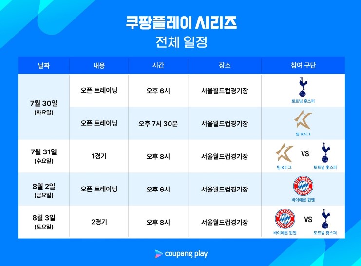특히, 잉글랜드 프리미어리그의 명문 구단 토트넘이 '2022 쿠팡플레이 시리즈' 이후 2년 만에 다시 한국을 방문합니다.