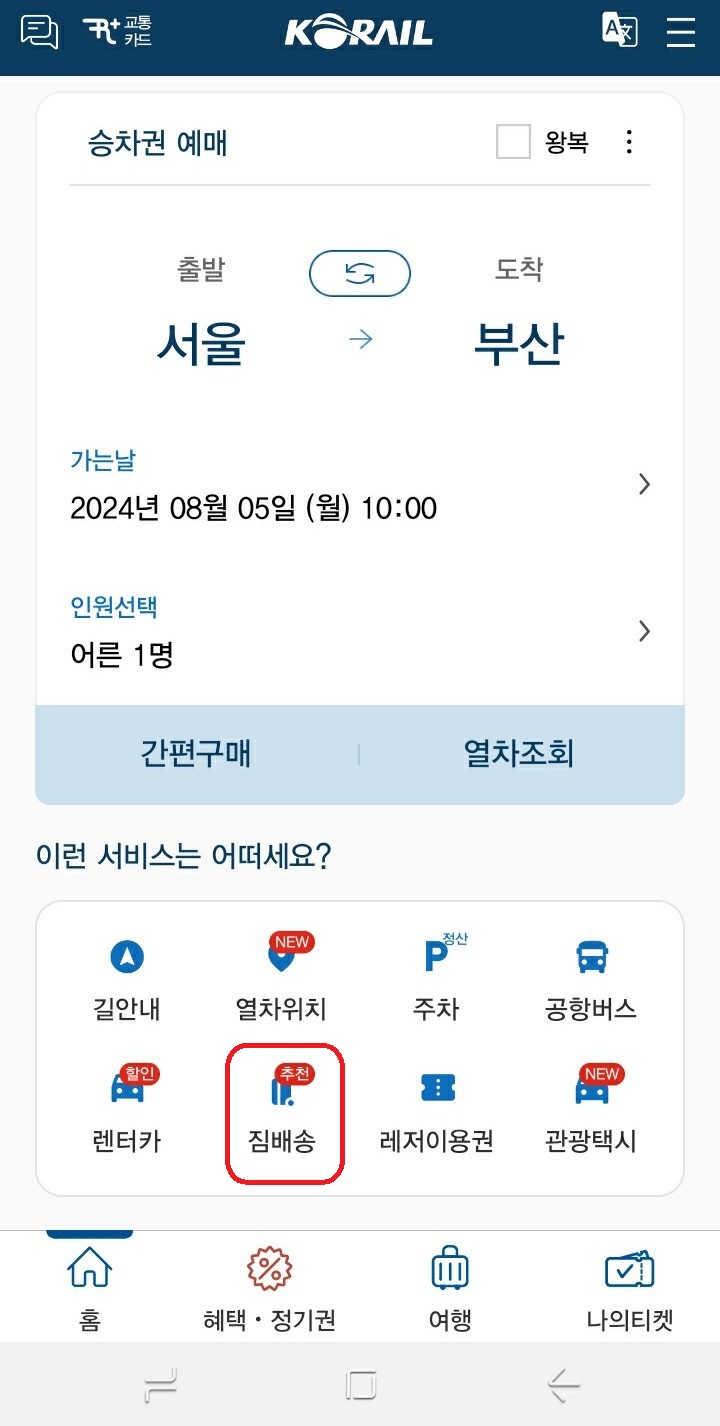 ① '짐배송' 선택